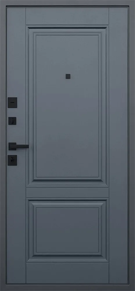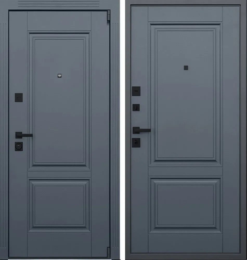Порошковое покрытие "муар серый". Панель МДФ 16 мм. Объемная фрезеровка. Цвет "графит". Наличник МДФ: толщина 16 мм, ширина 85 мм.
